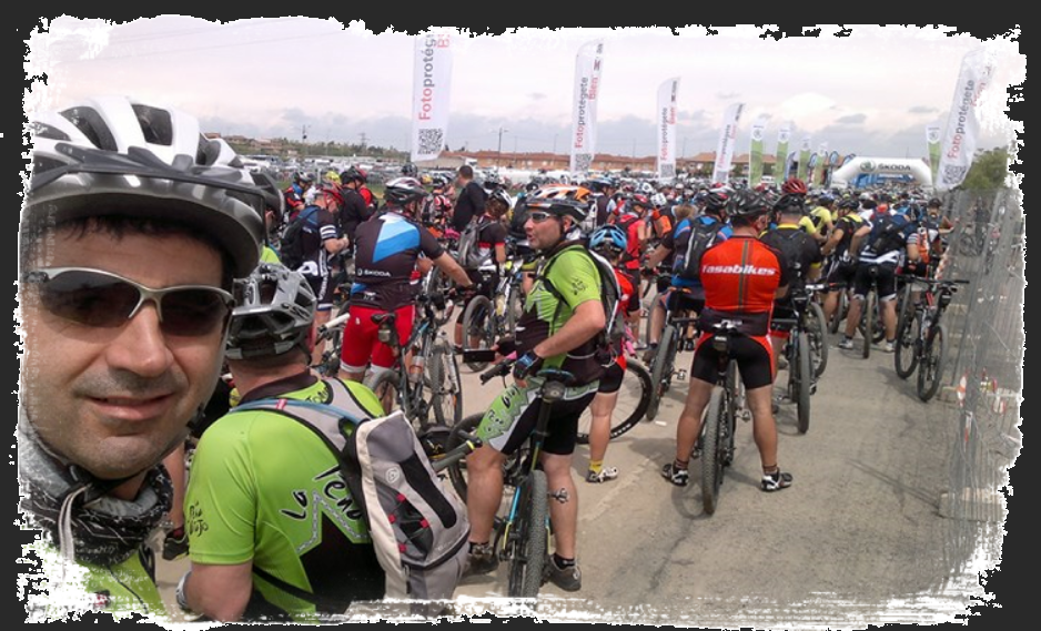 Salida 12:30h El Satélite detecta una mancha verde en el vagón de cola, TERRIBLE!!... SI!!... Ahí estamos!! Esos somos nosotros... buenos compañero, traviesos y echados palante. Magnifica panorámica que invitaba a unos selfie. Salida lenta de 3.400 Btteros todos entaponados hasta cruzar el pueblo. Tras 15km entramos en zonas de polvo, donde se formaban tormentas de arena que apenas se podía ver delante, esquivando las piedras, los compañeros y a los adversarios no tanto. Sensaciones a lo Play Station.